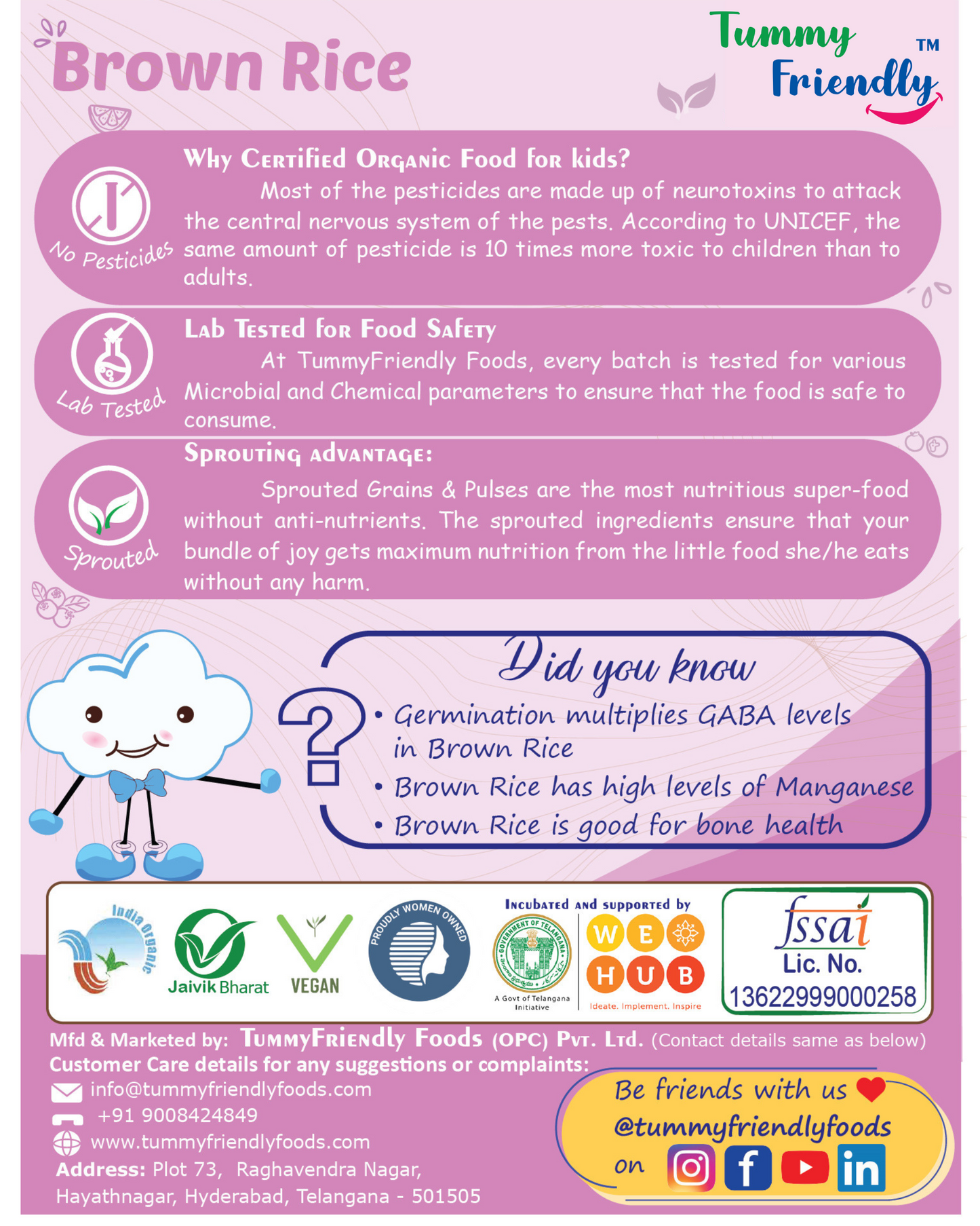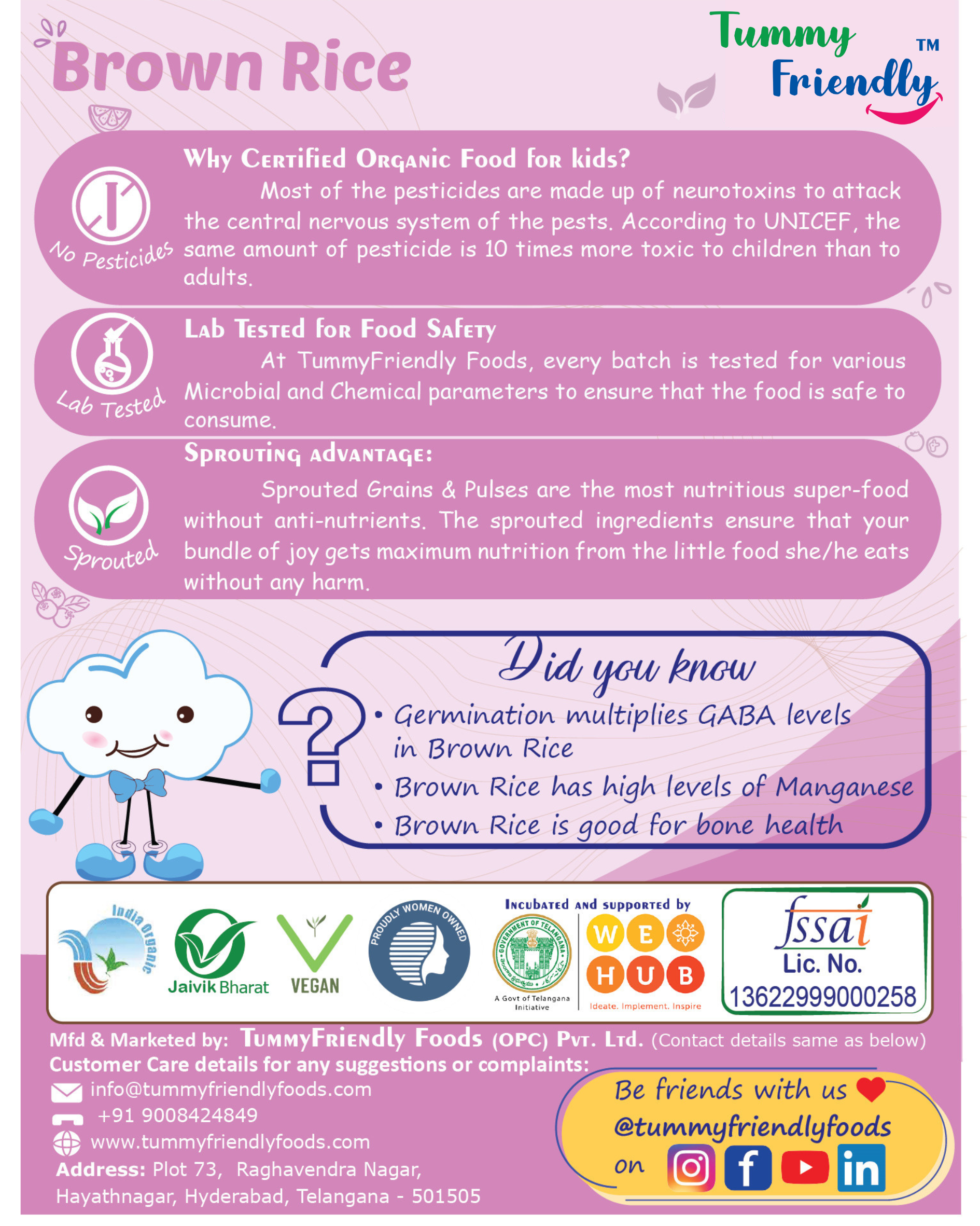 ♥ Sprouted Brown Rice is laden with nutrients, it helps support the rapid growth cycles in little ones.