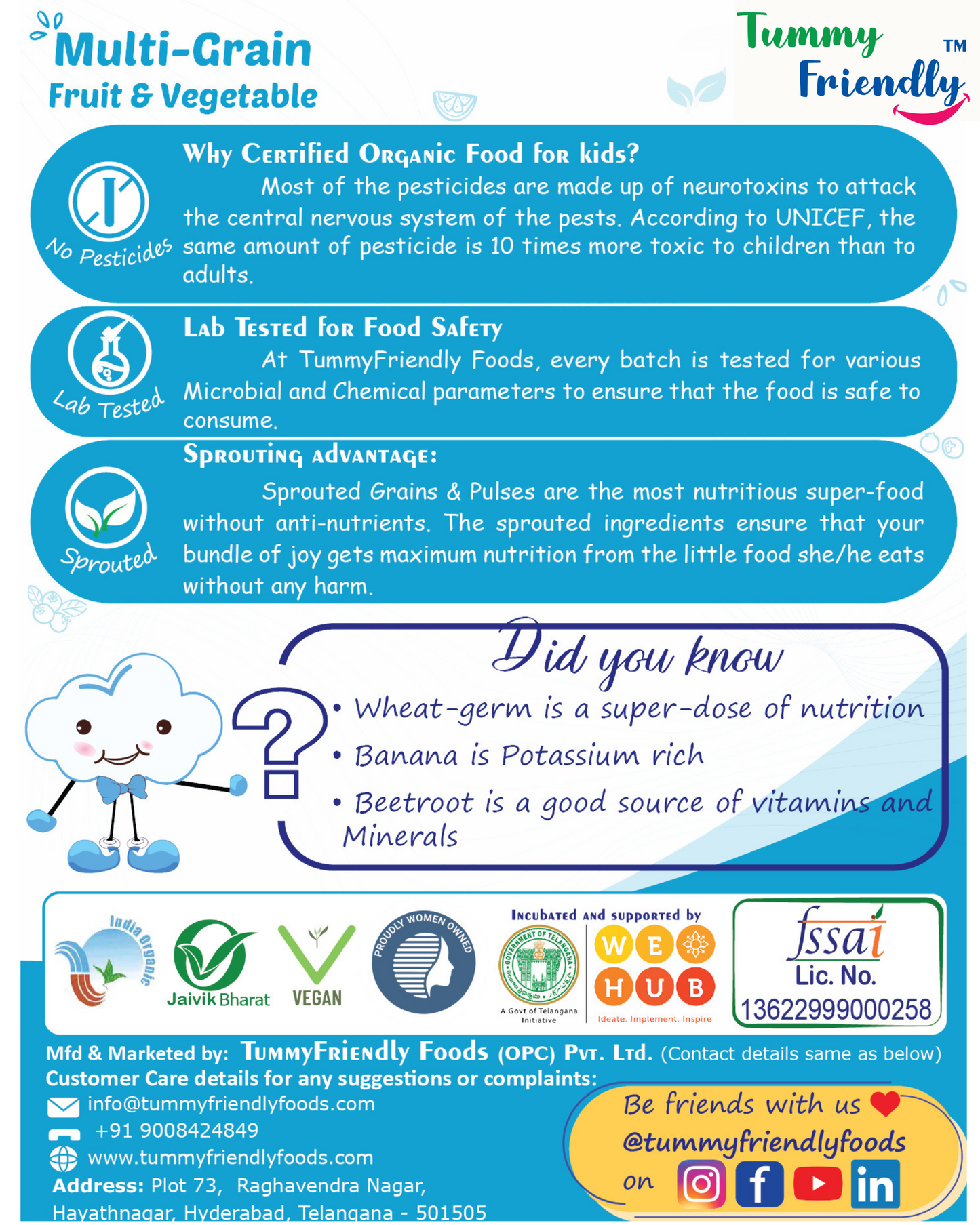 ♥ Rich in Dietary-Fibre which keeps the little tummy happy and healthy.