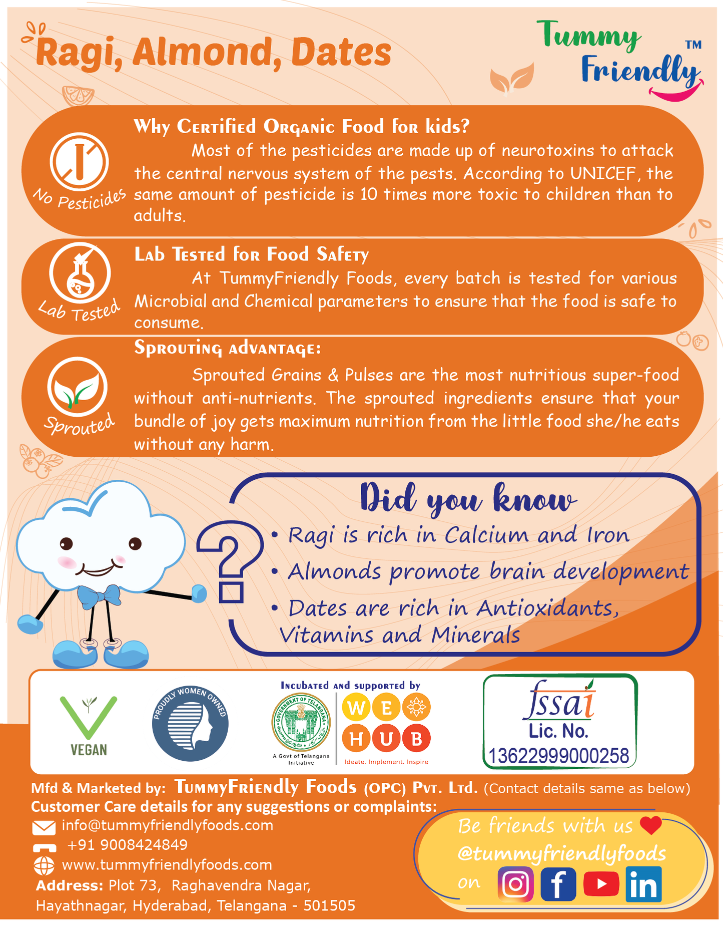 ♥ Ragi is rich in Calcium and Iron which promote bone growth and overall development.