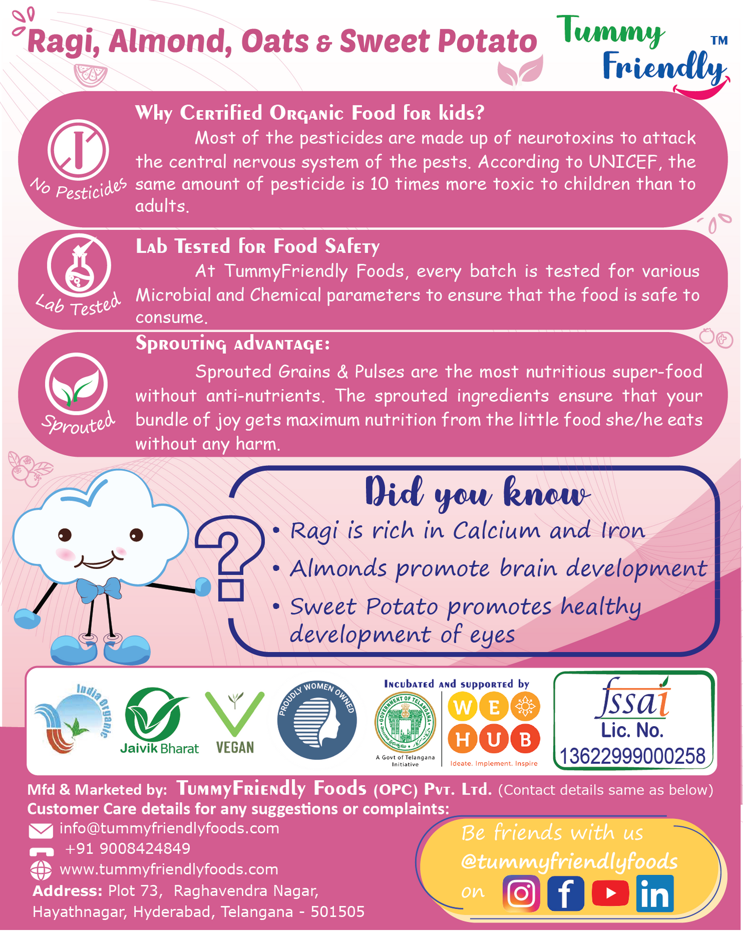 ♥ Ragi is rich in Calcium and Iron which promote bone growth and overall development.